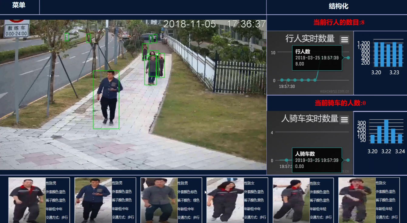 功能:综合利用基于深度学习的各种视觉任务算法,开发基于视频大数据的多功能结构化系统